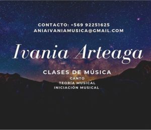 - CLASES DE CANTO, TEORÍA MUSICAL, INICIACIÓN MUSICAL: Ania Ivania, profesora de música UMCE y destacada cantautora en Ania Ivania Música. Contacto: Aniaivaniamusica@gmail.com
