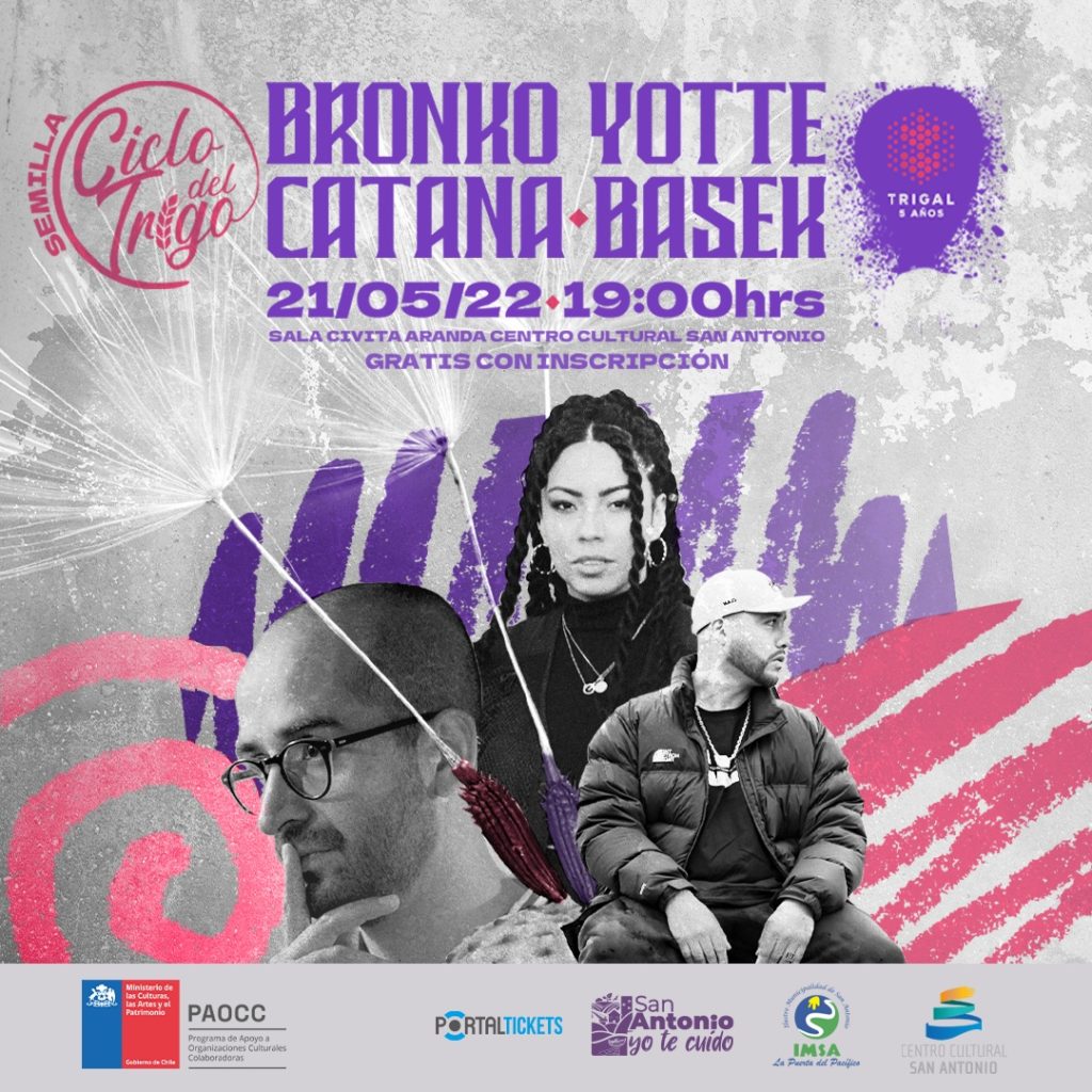 Tres exponentes del rap se darán cita en «Semilla», un encuentro inédito entre artistas del género donde destacan Bronko Yotte y Catana, dos cantantes que llegan por primera vez a San Antonio para mostrar lo mejor de su repertorio. A ellos se les suma Basek, rapero y freestyler sanantonino, conocido por ser bicampeón nacional de Red Bull, entre otros reconocimientos.
