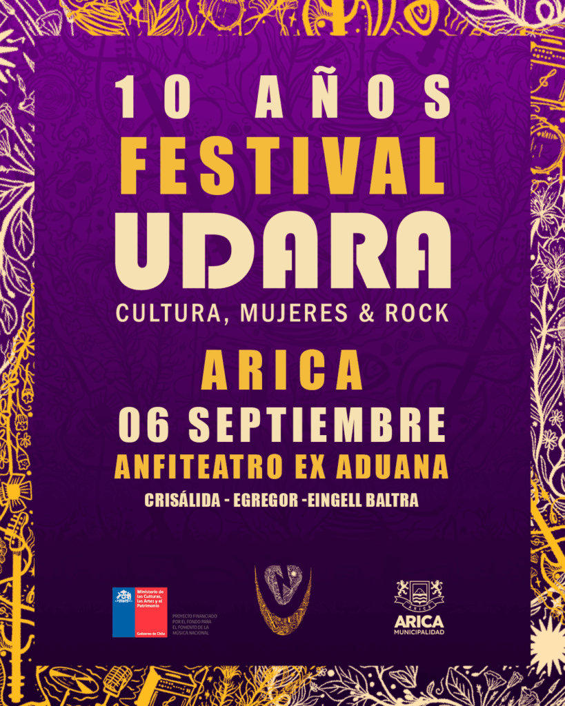 Tras el éxito rotundo de la primera jornada del Festival UDARA en la ciudad de Temuco, la agrupación se traslada y prepara su segunda fecha en la ciudad de Arica, para el próximo sábado 6 de septiembre en el Anfiteatro Ex Aduana. La jornada promete una experiencia única con la fuerza del metal local de la banda Egregor, el rock de raíz de Eingell Baltra y la presentación de la banda nacional Crisálida, referentes del metal progresivo latinoamericano quienes mostrarán su más reciente trabajo “Niños Dioses”, inspirado en el folclore de los pueblos originarios.