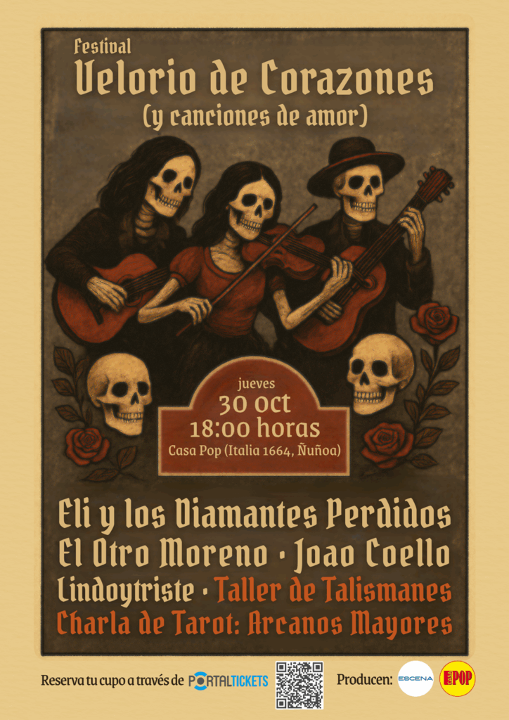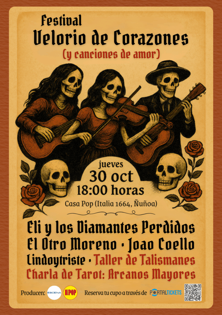 Eli y los Diamantes Perdidos encabezará esta primera versión de “Velorio de Corazones (y canciones de amor)” en Barrio Italia: una mística jornada abierta a todo público con música en vivo, charlas y talleres gratuitos sobre tarot, rituales y talismanes, a celebrarse este jueves 30 de noviembre en Casa Pop (Av. Italia 1664, Ñuñoa) desde las 18hrs.