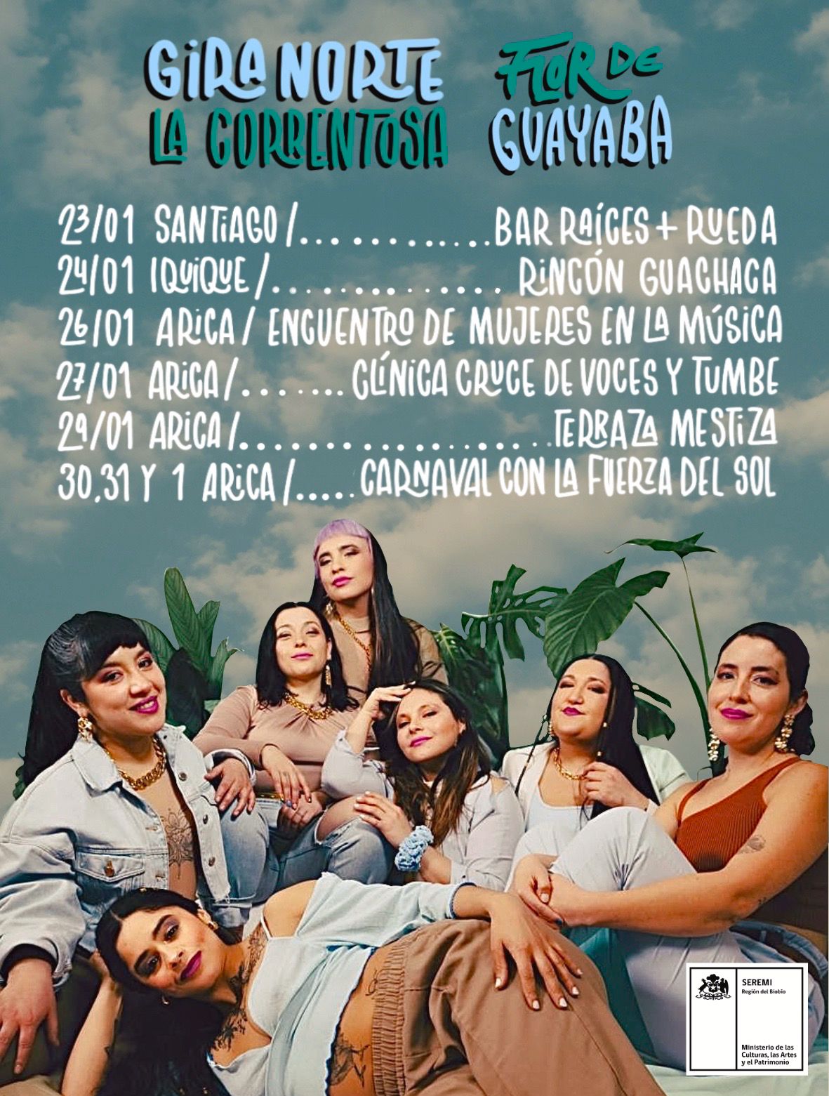 “La gira nace en el marco de los 10 años de la banda y esto viene a ser un regalo para poder visitar territorios al fin con los que ya habíamos establecido lazos y conexiones» comentan las integrantes de Flor de Guayaba. «El año pasado fue noticia nacional que Arica Negro, agrupación que reivindica la afrodescendencia y que participó en el Carnaval Con la Fuerza del Sol, interpretó nuestra canción Agua, lo que fue hermoso y un incentivo para ir este año a compartir y cantar presencial con toda la banda. Este 2026, será la canción Libre, que es parte del disco Correntosa, la que se interpretará en vivo junto a Arica Negro».